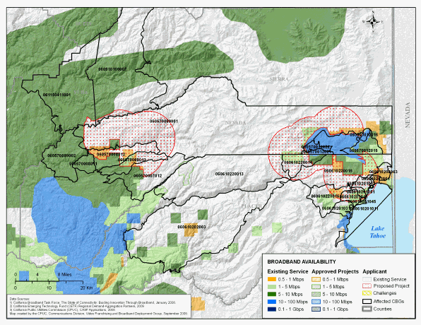 CD reviewed the shapefiles, which mapped the broadband deployment, using sources including, but not limited to, the United States 2000 Census data and the January, 2008, Broadband Task Force Report and the revised August 10, 2009, California Broadband Task Force (CBTF) map, among others. These maps helped to verify the existence of or non-existence of broadband service areas and broadband speeds, where available.