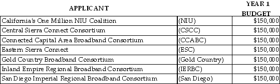 2. The total approved from the Rural and Urban Regional Broadband Consortia Account is $1,669,895 for Year 1 activities in 2012 and the three-year budget allowances are follows: