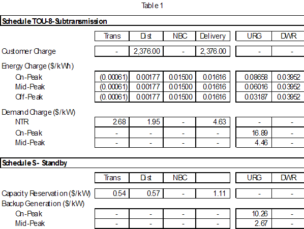 Table 1 provides an example of the applicable retail charges prior to the CAISO's implementation of its SPP tariff. Similar to other retail loads, station power loads are assessed transmission charges and energy sales charges.