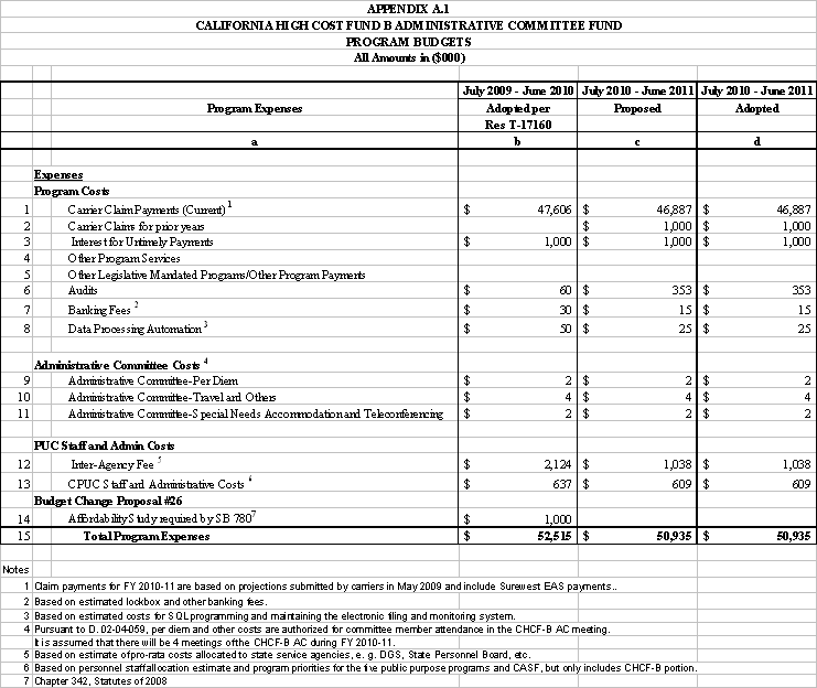 1. The expense budget for the California High Cost Fund-B Administrative Committee Fund for Fiscal Year 2010-2011 of $50.935 million, as set forth in Appendix A.1 of this resolution, is adopted.