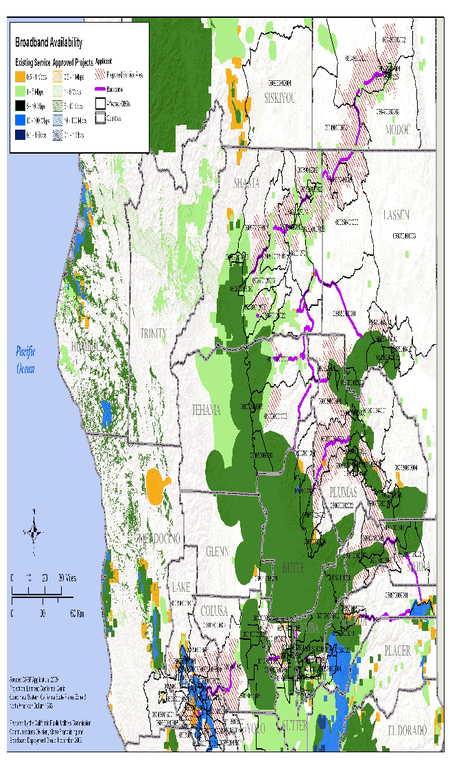 · Backbone infrastructure will wind around from eastern Tehama to southern Shasta and Lassen Counties and will serve pockets of unserved areas;