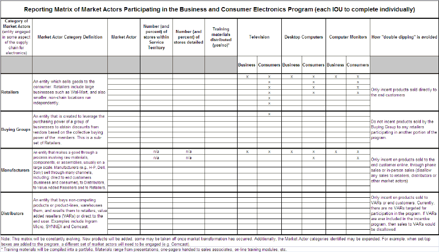 * The final number, and determination of who is responsible for reporting, is subject to the 2010-2012 EM&V work plan process (pursuant to D.10-04-029) and the prioritization and negotiations between Energy Division and the IOUs. Market transformation indicator results shall be reported, as available, by Energy Division or the IOUs, depending on who conducts the necessary market studies. |