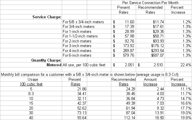 2. The increase in rates is due to water consumption reduction and increases in operating expenses in employee labor, transportation expenses, office services and rentals, and office supplies and expenses.
