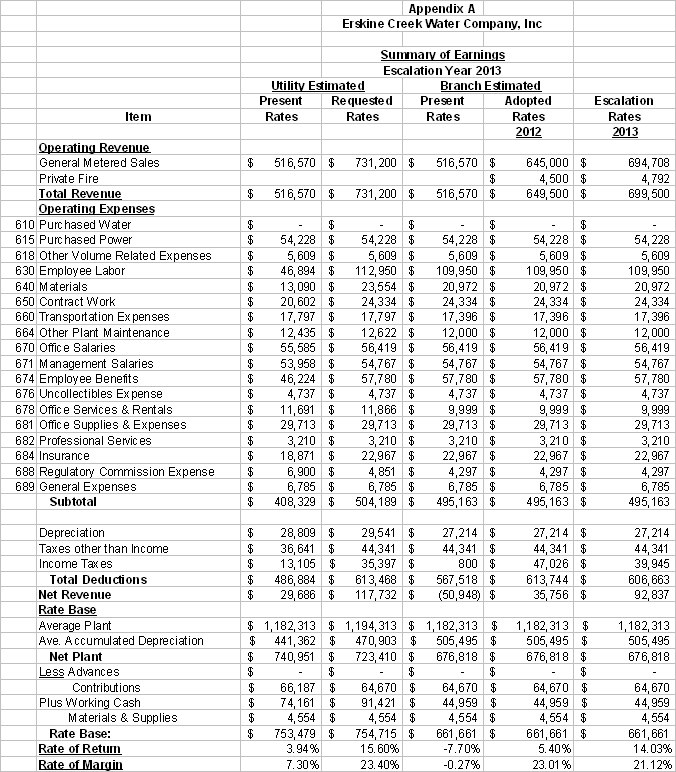 TEST YEAR 2012 AND ESCALATION YEAR 2013