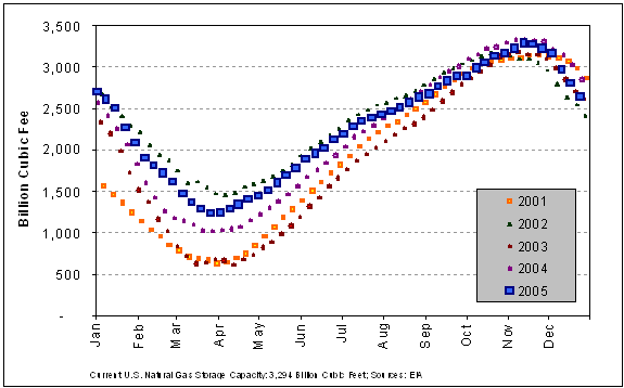 Figure I.A-4: U.S. Storage Inventories from 2001 through 2005