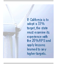 If California is to adopt a 33% target, the state must examine its experience with the 20% RPS and apply lessons learned to any higher targets. Such an aggressive goal must be backed up by action and real progress, which means that California must effectively address the barriers hindering achievement of its 20% goal. Further, the magnitude of the 33% RPS implies costs, GHG emissions and new operating and planning challenges that are not yet fully understood. For these reasons, the CPUC believes that: