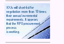 Since the legislation adopting the RPS program was passed in 2002, the CPUC has approved 95 contracts for 5,900 MW for new and existing RPS-eligible capacity. Of these contracts, 61 are for new projects, totaling 4,480 MW. Were all this capacity to come online by 2010, we would more than achieve our RPS target. Furthermore, the response to RPS solicitations has been robust and increasing, one indication that the market is maturing. IOUs are finalizing the short-lists resulting from their 2008 solicitations for RPS-eligible energy, and will short-list for negotiation more than 10 times their annual incremental requirements. It appears, therefore, that the RPS procurement process is working.