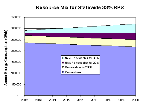 · Achievement of a 33% by 2020 RPS would reduce generation from non-renewable resources by 11% in 2020.