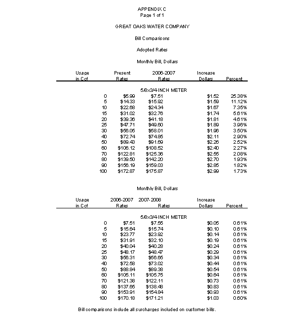A notice of the proposed rate increase was published by Great Oaks on September 7, 2005 in the San Jose Mercury, a daily newspaper of general circulation. The notice was also sent to all customers by bill inserts. A public meeting was held on October 17, 2005 at 6 p.m. at the Holiday Inn, in Santa Clara, CA. The notice of the public meeting was published in the San Jose Mercury on October 4, 2005. No customer protested the rate increase; no customer attended the public meeting.
