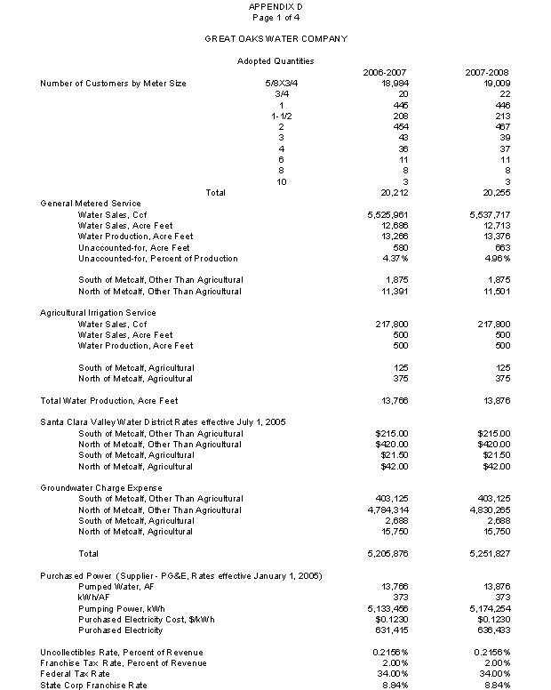 Great Oaks is required to submit every five years a Water Management Plan to the State Department of Water Resources (DWR). The plan covers water supply sources and quantities; reliability of sources; past, present, and future water use; supply and demand comparisons; water demand and management measures; water shortage contingency plan; water recycling, etc. Great Oaks has submitted a copy of its 2005 Water Management Plan with its advice letter. WD considers Great Oaks' conservation measures as outlined in the plan to be satisfactory.