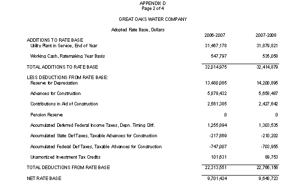After review of Great Oak's response to the draft resolution and further discussion with Great Oaks, both WD and Great Oaks agreed to a overall rate of return on rate base of 9.01%for each 2006, 2007, and 2008, which included the debt issuance cost.