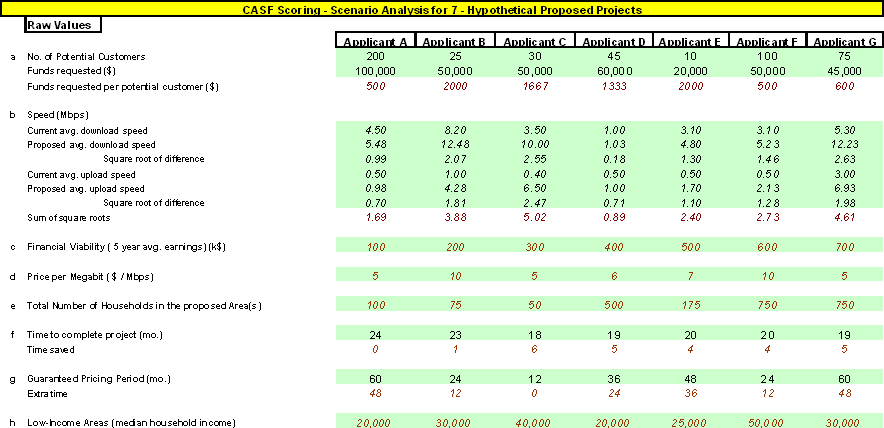 For example, if a project (for an unserved area and the applicant is requesting a CASF grant only) will cost $2.5 million and 20% of those costs are related to facility improvements that will benefit both unserved and served areas, applicants should pro-rate the amounts related to each area. Thus, if the common facilities will be used equally by unserved areas and by communities with broadband today, then the applicant should only include $250,000 in the application for facility improvement costs. The applicant should thus ask for $1,575,000 in CASF funds ($1,400,000 for construction in the unserved area, and $175,000 in common costs allocated to the unserved area). The applicant should fully explain the total cost of the project and the allocation that was made to arrive at the figures used in the application. 19