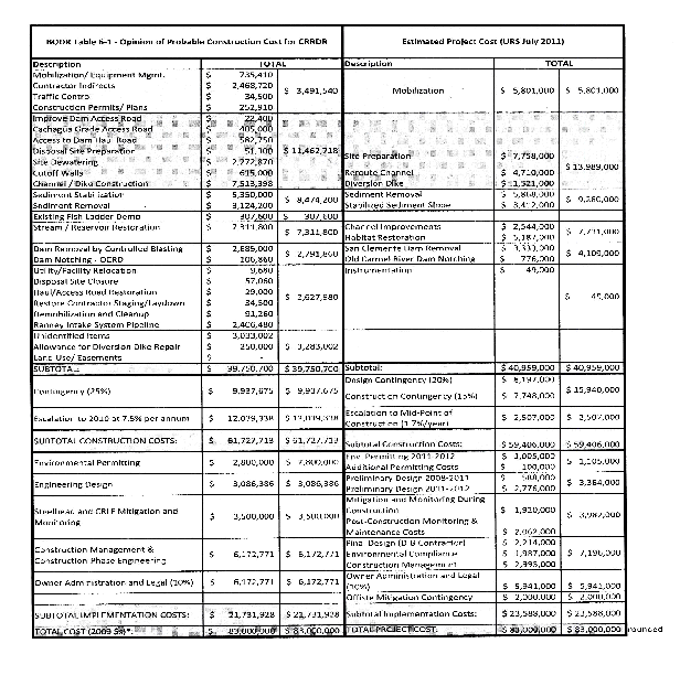 32. The cost to remove the accumulated sediment at the Dam would be quite expensive, specifically dredging costs of $12 to $30 per cubic yard for the 2.5 million cubic yards of accumulated sediment, and removing it would require 125,000 truckloads at 20 cubic yards per truckload.