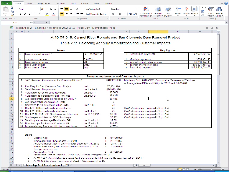 11. After receiving further critical comment, the DSOD withdrew the RDEIR in 2002. Cal-Am began meeting with NMFS, DSOD and others to develop a dam removal project. Cal-Am spent resources on geotechnical and survey work for dam removal and to develop a computer model to evaluate sediment transport on the Carmel River.