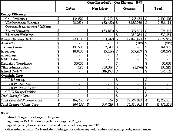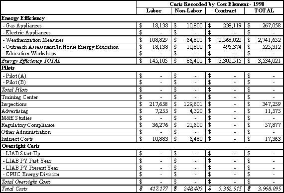 SoCalGas Table TA 7.2 - Program Year 1998