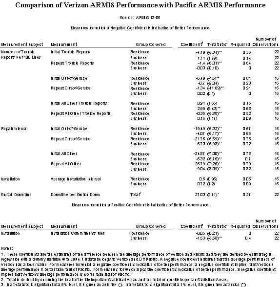 Concerning the ARMIS 43-05 measures, since there are no FCC service standards, we have compared the performance of Pacific and Verizon against a reference group of large utilities.