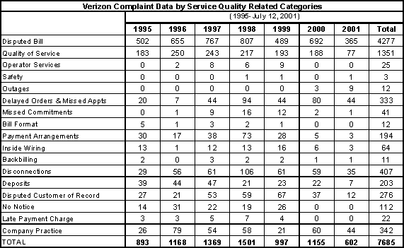 Verizon - January 1, 1995, through July 12, 2001 | ||||||||
