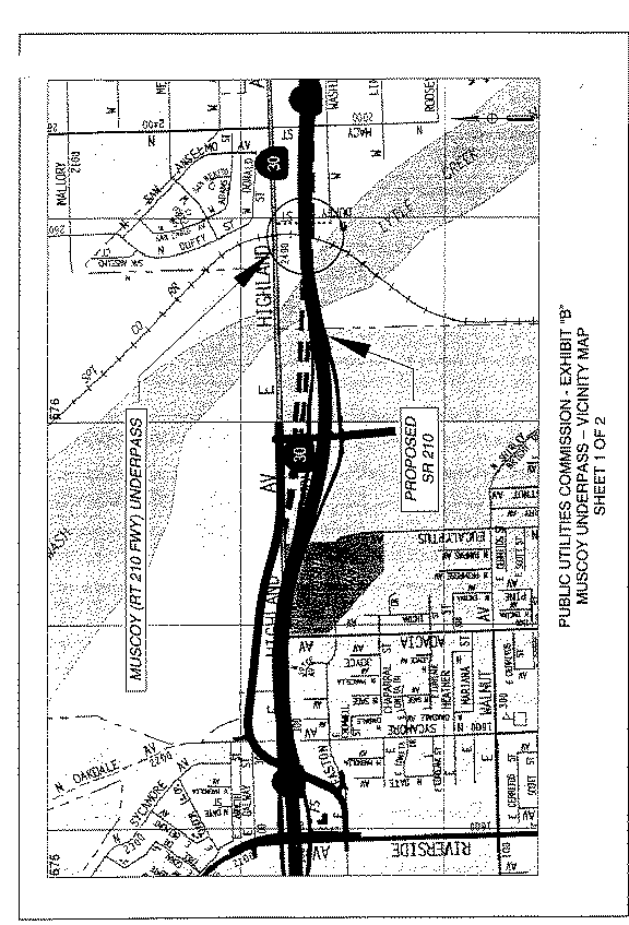 2. Caltrans requests authority, under Public Utilities Code Sections 1201-1205, to construct a new freeway under the existing Muscoy Underpass, which crosses under the tracks of the UPRR, on State Route 210 in San Bernardino County.