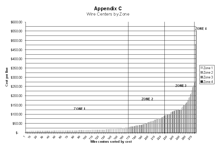 57. When Verizon's deaveraging methodology is used, two wire centers show significantly higher costs than all other zones.