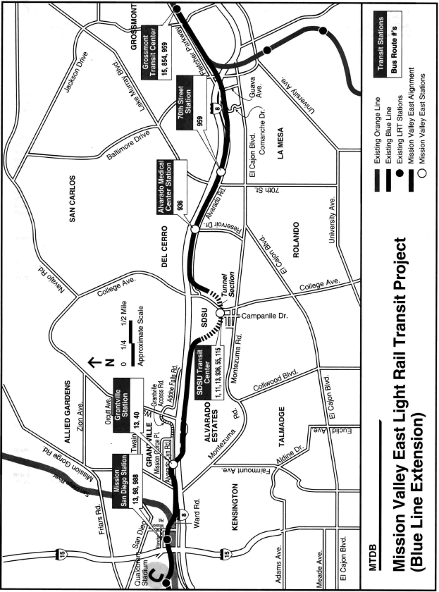 The MVE LRT Project closes the gap in San Diego's Regional Rail Plan. The line is an important, nonradial link connecting the growing East County communities with major employment and activity centers along Interstate 8 and within Mission Valley. It also provides a connection between key transit centers in western Mission Valley, greatly improving the overall system productivity. The project includes a station at the "front door" of San Diego State University (SDSU). SDSU has approximately 30,000 students, 5,000 full-time equivalent faculty and staff, and a shortage of parking.