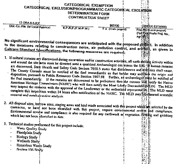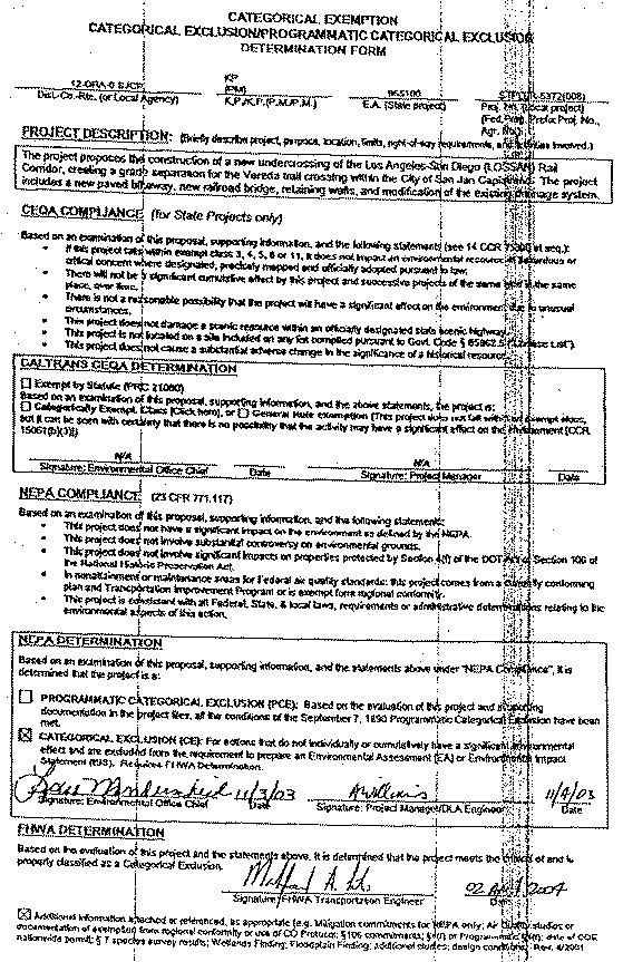 7. Caltrans is the lead agency for this project under NEPA and adopted a Categorical Exclusion for the project, On November 4, 2003.