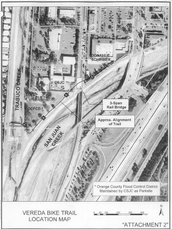 2. The proposed alignment for the trail is the most direct and safest alignment to be taken by trail users. The trail is included on the OCTA Commuter Bike Plan as it serves the San Juan Capistrano Multi-Model Transportation Center and is also included in the San Juan Capistrano Master Plan of Bike Trails.