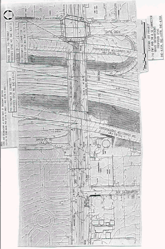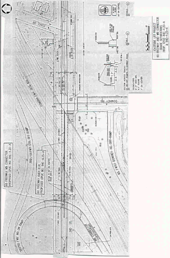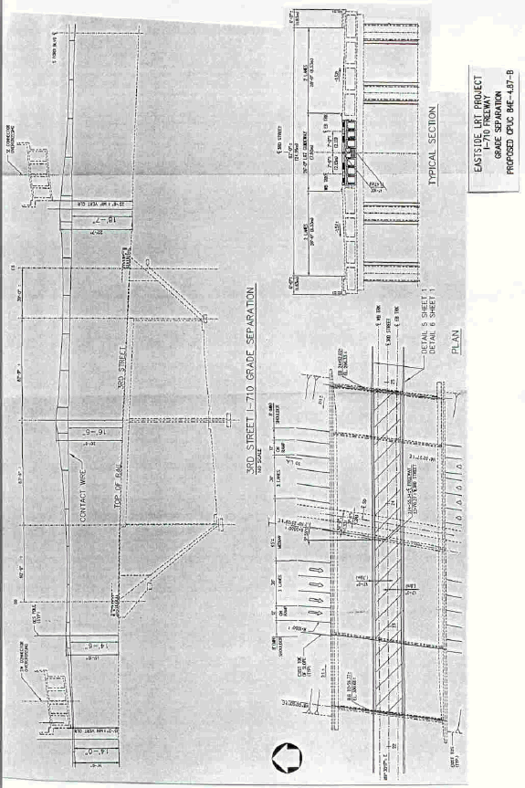 2. LACMTA requests authority, under Public Utilities Code Sections 1201-1205, to construct five new grade separations by constructing, within the median of Third Street, two ELRL tracks beneath and within the existing structures for SR-60 Freeway westbound connector, SR-60 Freeway, I-710 Freeway southwest connector, and I-710 Freeway southeast connector and on one existing bridge structure above I-710 Freeway, in Los Angeles County.