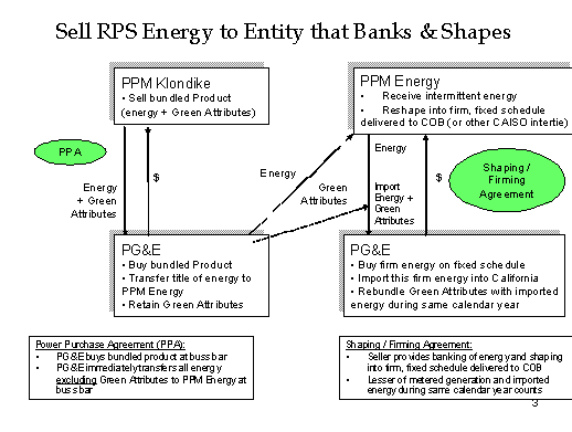 38 "Storage Energy" is used to define the amount of renewable energy generated by Klondike, and delivered from PG&E to PPM Energy.