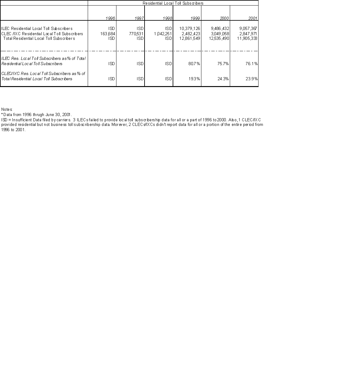 Figure A7: Residential Local Toll Subscribers in California, Based on CPUC Data Request Responses, 1996-2001*