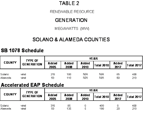 · The need of the utility for power: it is assumed that the generation identified by the CEC for each of the years 2005, 2008, and 2017 to fulfill the SB1078 requirement of at least 1% yearly increases will be utilized even if the utility has sufficient power from non-renewable resources.5