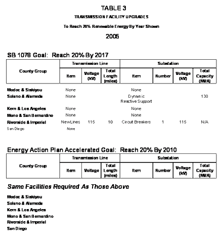 The plan identifies the upgrades to the transmission grid required to accommodate the renewable generation identified by the CEC for the years 2005, 2008, 2017, plus, for the accelerated plan, the year 2010. The detailed Section 2 of this report contains county-level analyses of the specific resources identified by the CEC.