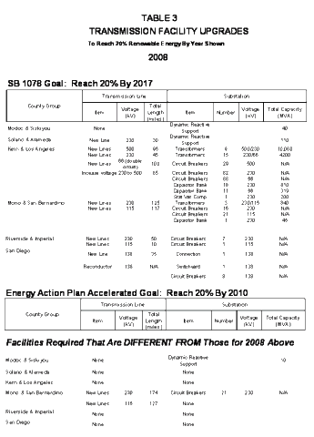 The detailed Transmission Plan describes transmission line and substation additions and modifications necessary to attain the legislative target of 20% RPS in 2017, as well as in 2010, as envisioned under the joint-agency Energy Action Plan. Generation potential as estimated by the CEC is paired with IOU estimates of the infrastructure needed to bring that potential on-line, with associated costs, all at the county-level. While this information cannot now be considered the basis for cost-effective transmission investments in the best interest of ratepayers - missing is the key ingredient of successful competitive bids, as envisioned by the legislature, as well as cost reductions after optimization of statewide transmission facilities across IOU boundaries - the Transmission Plan does accommodate the CEC's overview of renewable energy potential.