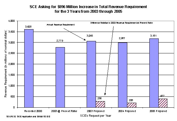 · SCE Requests Substantial Increases Over the Next 3 Years - $286 million for 2003, $208 million for 2004, and $402 million for 2005, over 2003 revenues at present rates.1