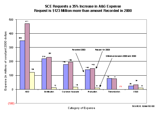 2 SCE adjusted recorded 2000 numbers for unique, abnormal, or one-time non-recurring expenditures. Thus, SCE's numbers cited in the above chart differ from recorded 2000 expense numbers, as reported on FERC Form 1, that are used in subsequent charts.