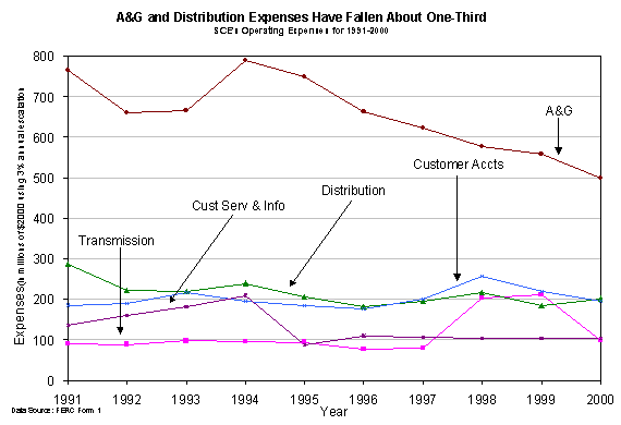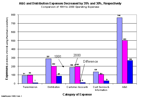 · A&G and Distribution Expenses Show the Greatest Decrease from 1991 through 2000.
