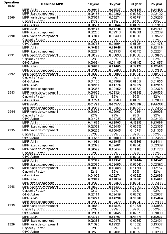 1 Note: using 2009 as the base year, Staff calculates MPRs for 2009-2020 that reflect different project online dates. The 2008 MPR model is available at: http://www.ethree.com/MPR.html