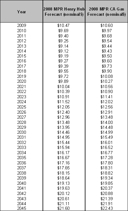 2008 MPR California and Henry Hub Gas Forecast (2009 - 2045)