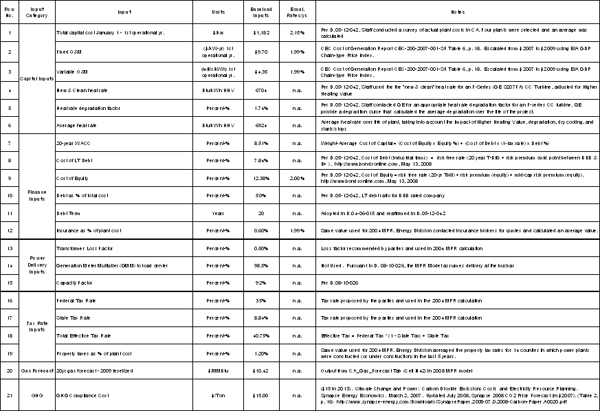 45 Staff implemented the Synapse values in consultation with David White, one of the principal authors of the report, "Synapse 2008 CO2 Price Forecasts Report".