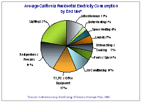 Residential. Lighting comprises 22 percent of electricity use in the average California home (see figure).2With more than 11 million homes and 500 million light sockets in California, there is substantial potential for energy savings and peak demand reduction.3For example, incandescent lamps in the 10-15 lumens per watt range are the predominant technology in residential applications. Switching all residential sector lighting to technologies using 40 lumens per watt would achieve a 50 percent reduction in energy use.4