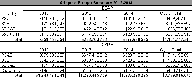 DECISION ON LARGE INVESTOR-OWNED UTILITIES' 2012-2014 ENERGY SAVINGS ASSISTANCE (ESA) (FORMERLY REFERRED TO AS LOW INCOME ENERGY EFFICIENCY OR LIEE) AND CALIFORNIA ALTERNATE RATES FOR ENERGY (CARE) APPLICATIONS 11