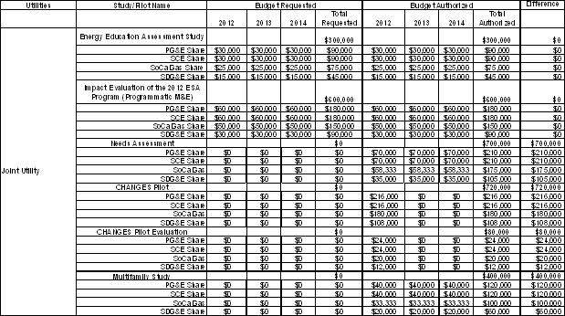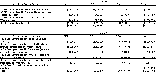 123 These projections are summarized from the IOUs' responses to the December 2011 Ruling.