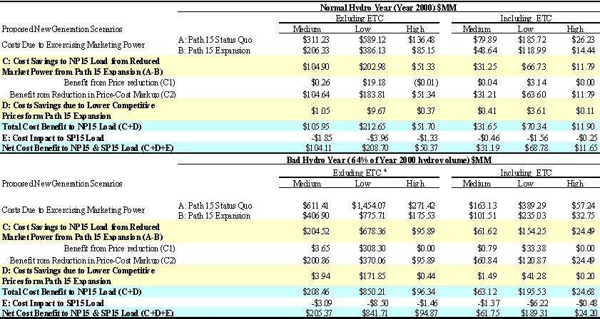 13. The method used by the ISO to try to capture the impact of continued ETC inefficiency on the economics of the project appears to inflate the estimated benefits in the six scenarios that exclude ETCs. This is because the ISO subtracts the full amount of ETC capacity reserved in 2000 from operational transmission capacity in these scenarios, rather than the amount of unscheduled ETC capacity.