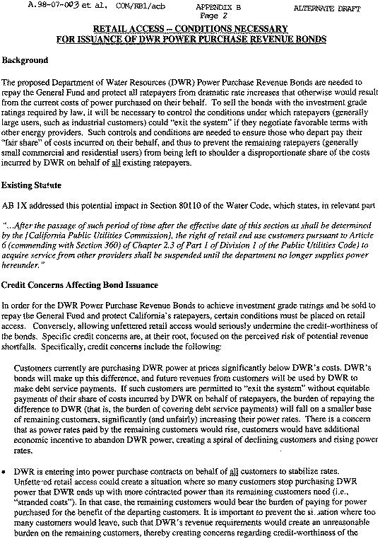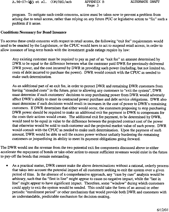 7. State officials have expressed concerns about the impacts of a continuation of direct access upon the saleability of state revenue bonds. The Commission should explore alternatives to suspension of direct access that may accommodate those concerns.