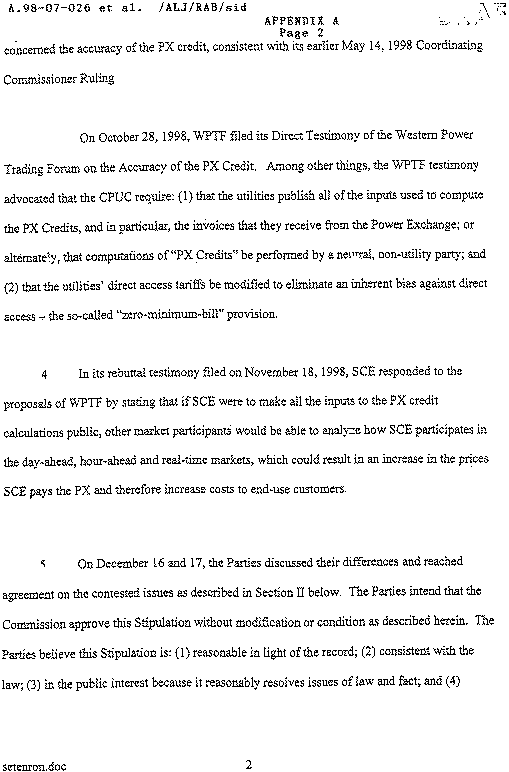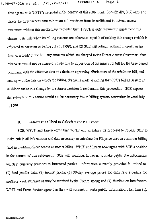 2. SCE should not make cash payments to direct access customers or ESPs to satisfy the PX credit, but should continue to track and accrue credits for such customers.