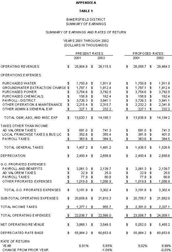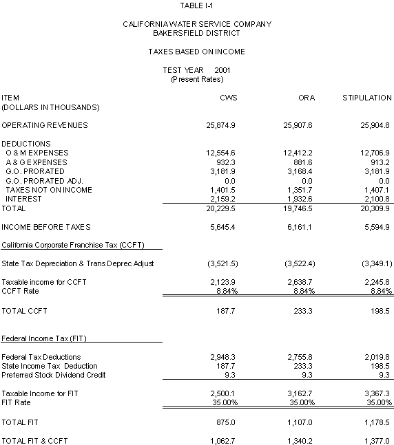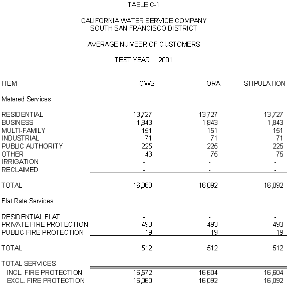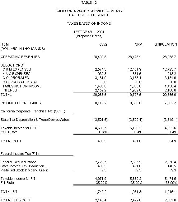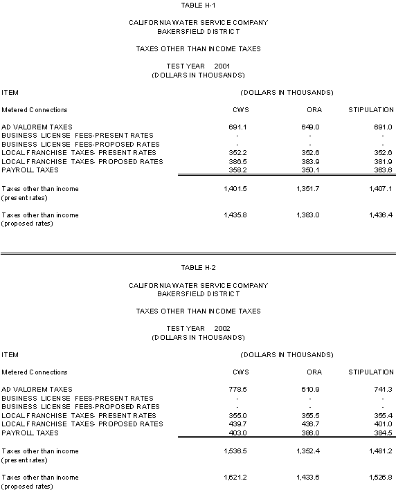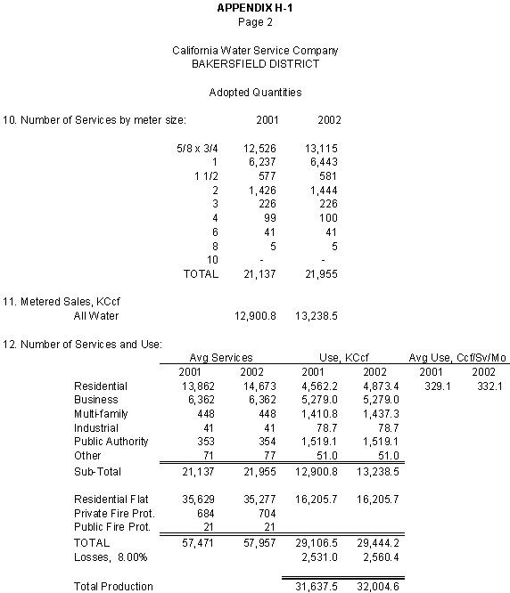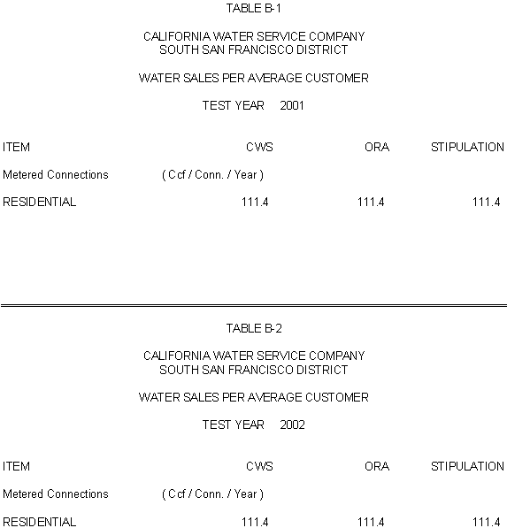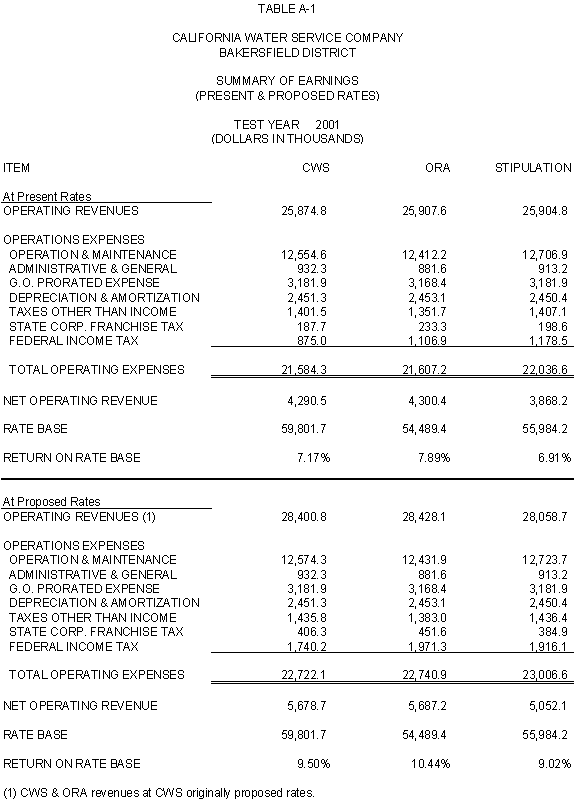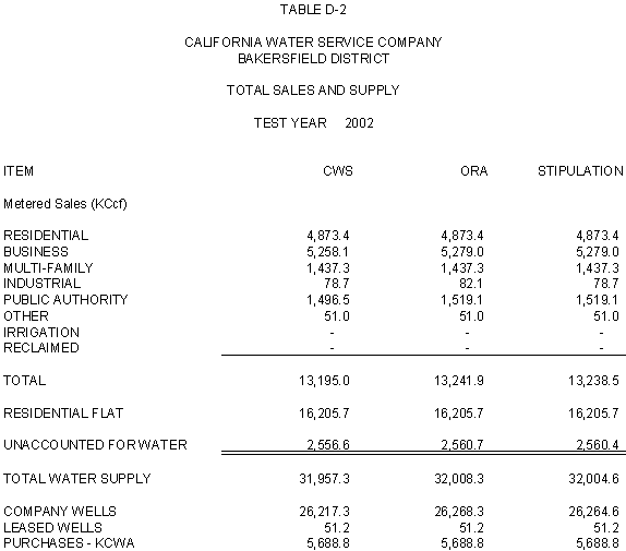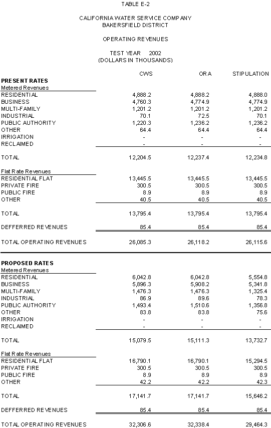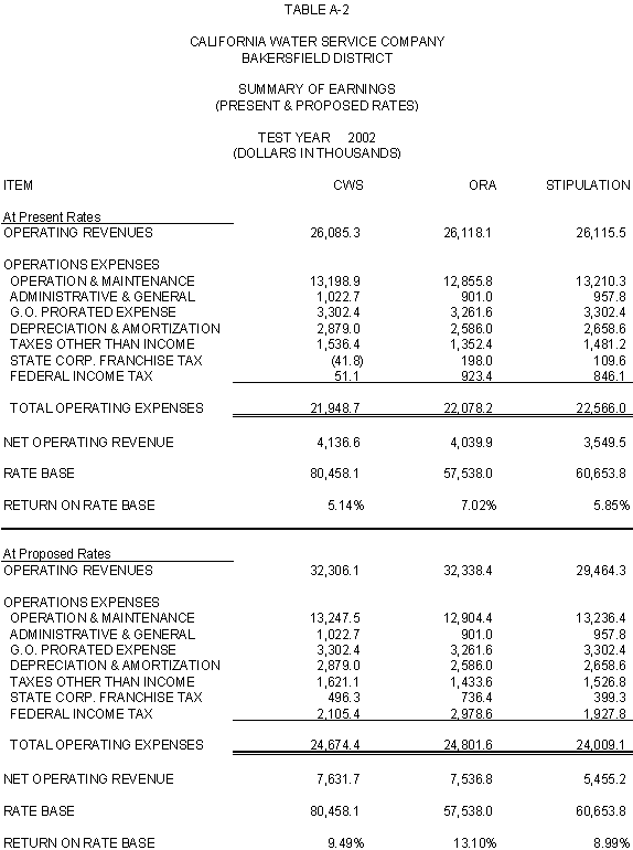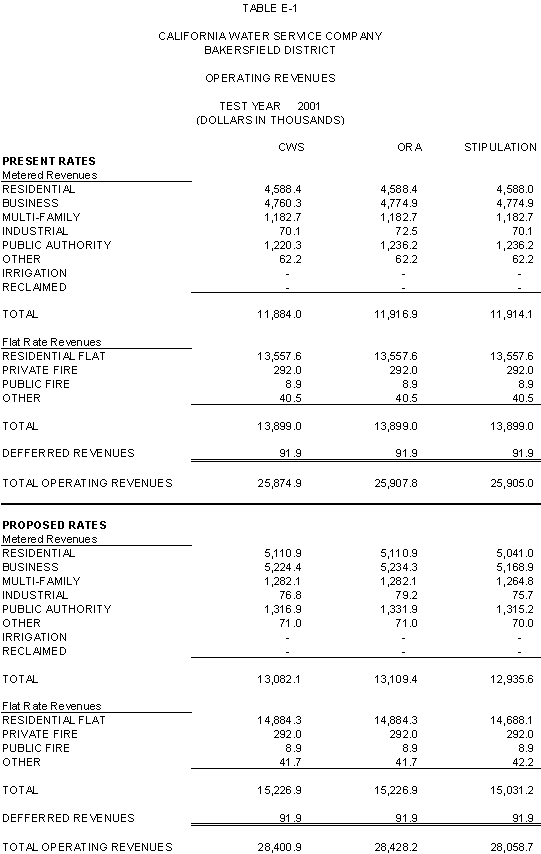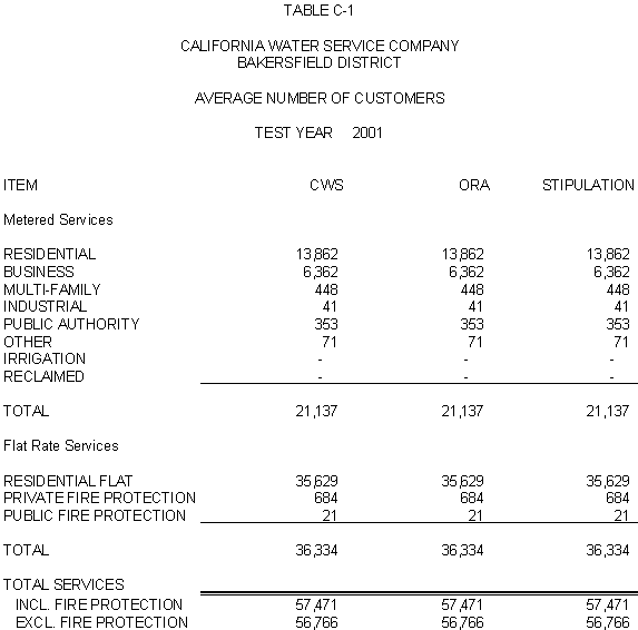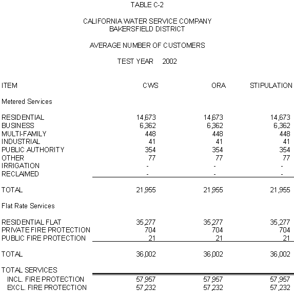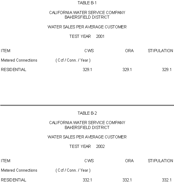 The Parties agree that, consistent with the requirements of D.96-05-064, rates for general metered service should recover 50% of CWS's fixed costs through service charges and that a single commodity rate should recover the remaining fixed costs and all variable costs. Additionally, the Parties agree that the transition to the ratios (shown in Exhibits CWS-2, CWS-4, and CWS-8, page 12-1) established in 1991 should continue, but that a limit of no more than twice the average increase should apply. Finally, the Parties agree that to promote equity, the Bakersfield District's flat rates should be increased by the system average increase. The rates attached to this Stipulation meet these criteria.