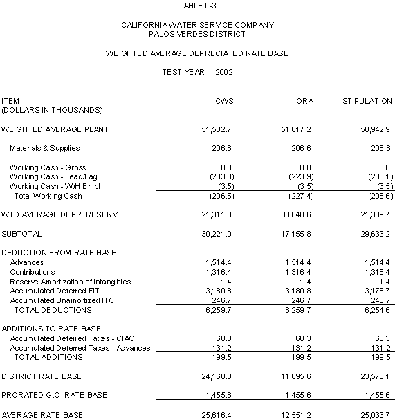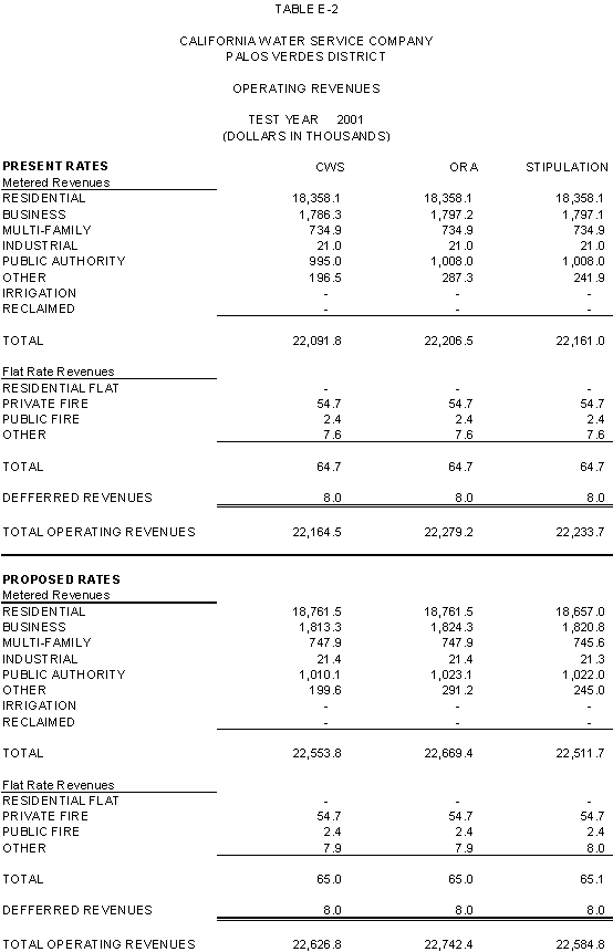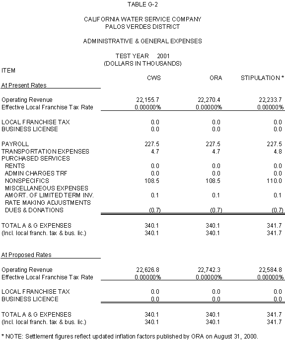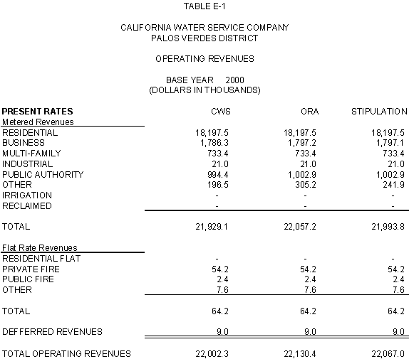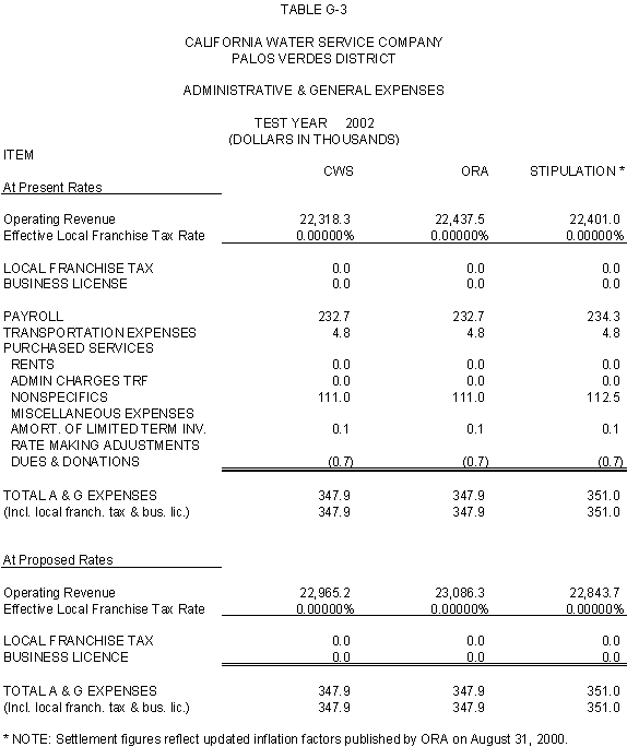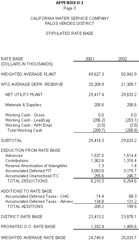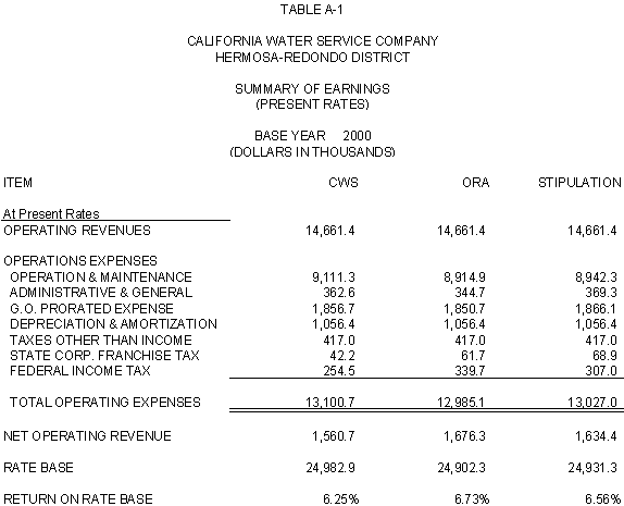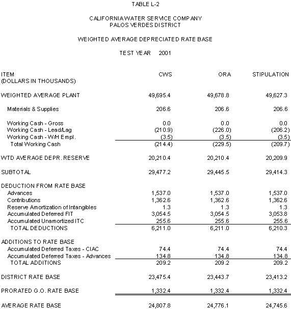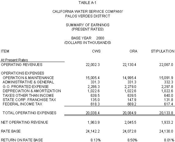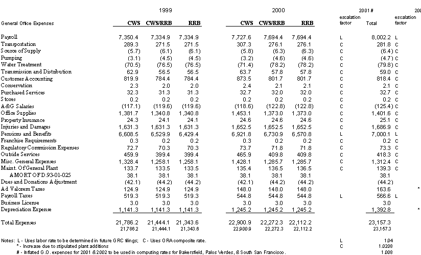 6.11 ORA and CWS agree that the stipulated rate base and expenses of the General Office should be used for the Palos Verdes and Hermosa-Redondo Base Cases. Additionally, the Parties agree that the revenue requirement for Test Years 2001 and 2002 in the Bakersfield, Palos Verdes, and South San Francisco Districts should be based on the rate base and expenses of the General Office adopted in D.99-05-018.