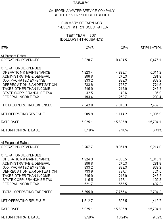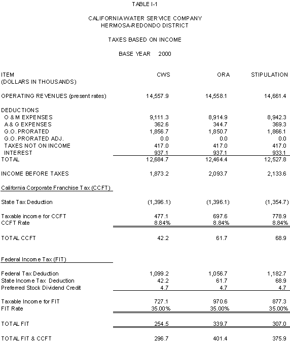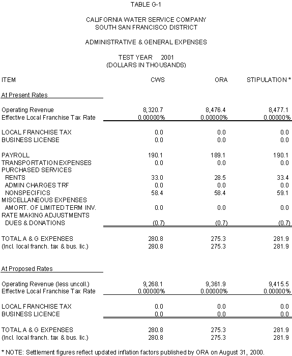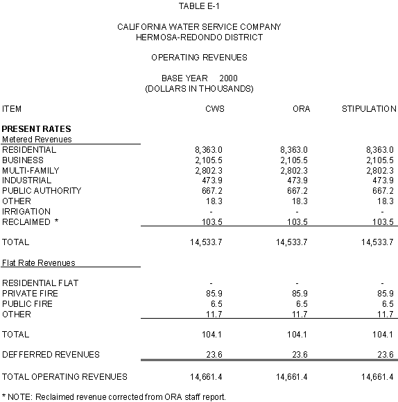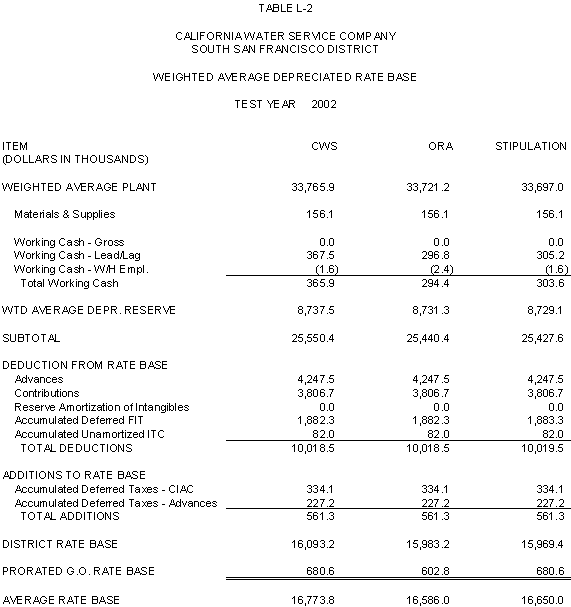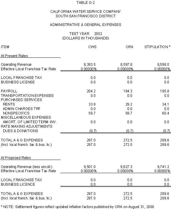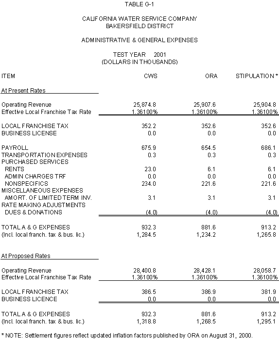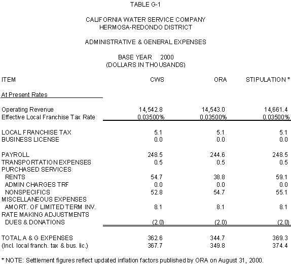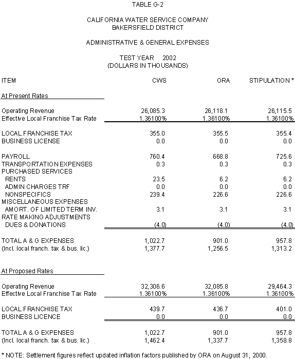6.11 ORA and CWS agree that the stipulated rate base and expenses of the General Office should be used for the Palos Verdes and Hermosa-Redondo Base Cases. Additionally, the Parties agree that the revenue requirement for Test Years 2001 and 2002 in the Bakersfield, Palos Verdes, and South San Francisco Districts should be based on the rate base and expenses of the General Office adopted in D.99-05-018.