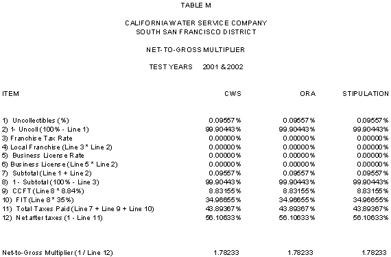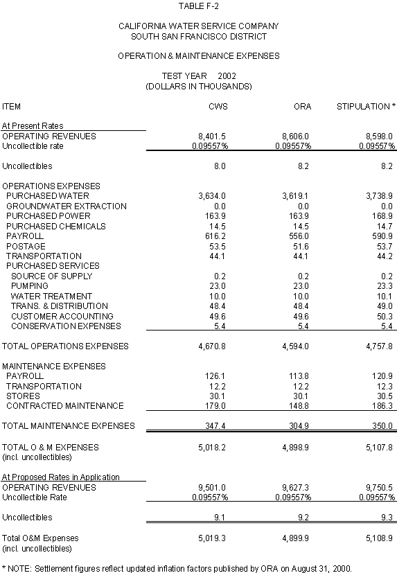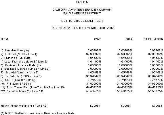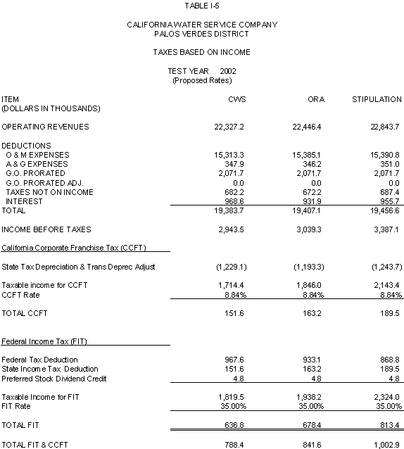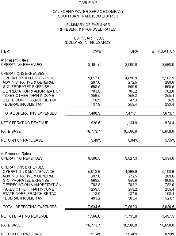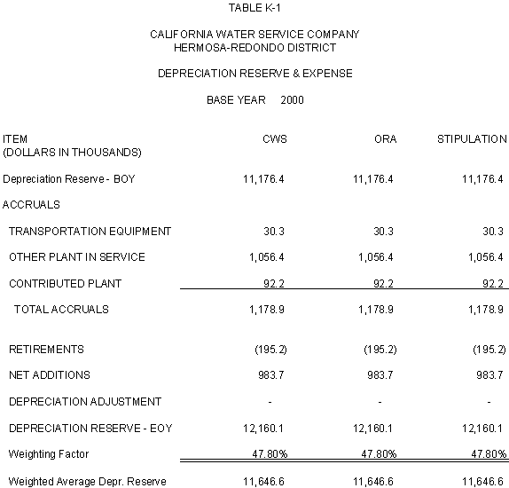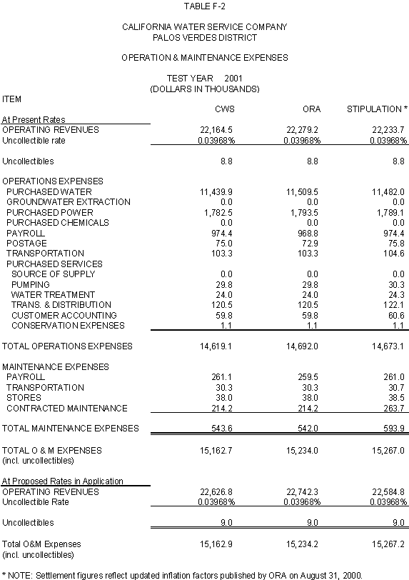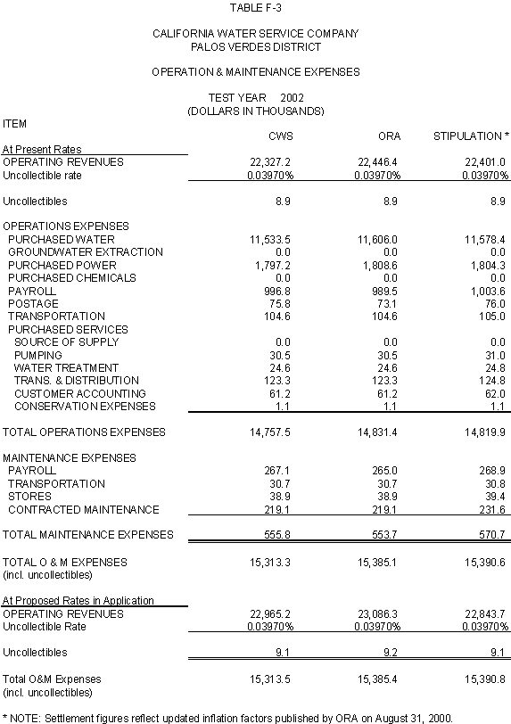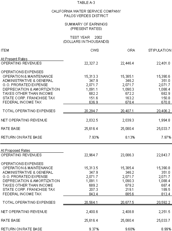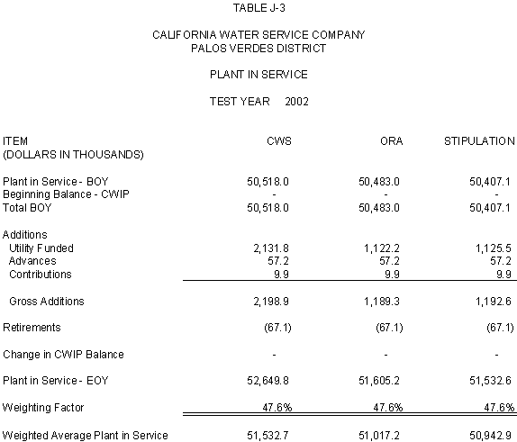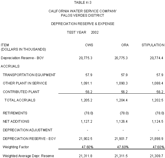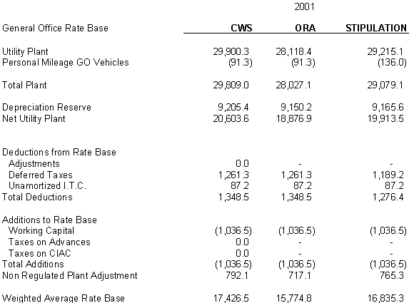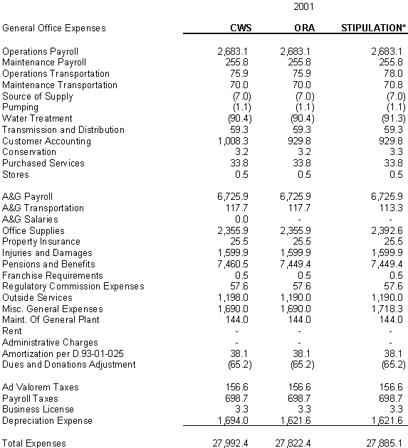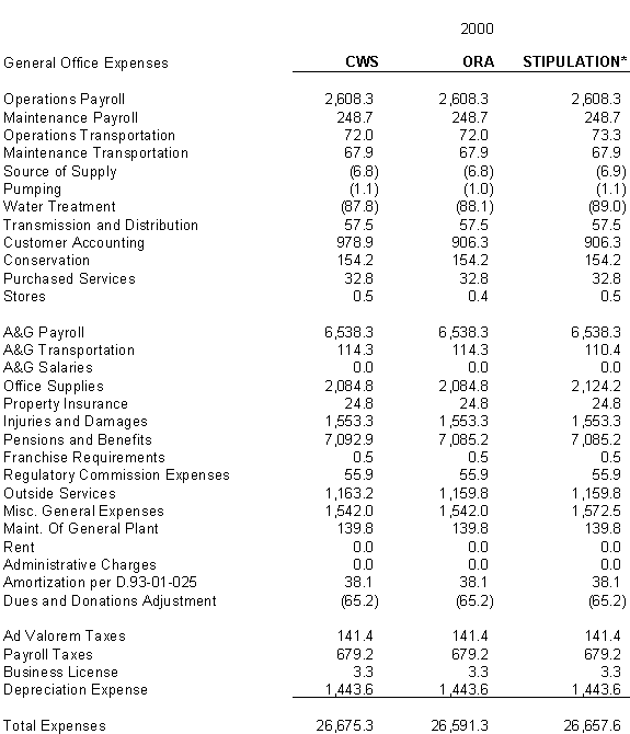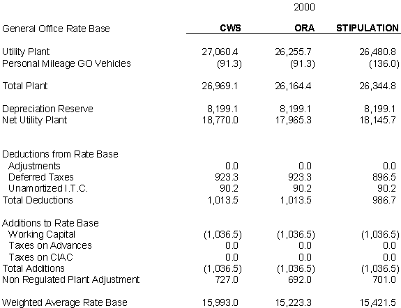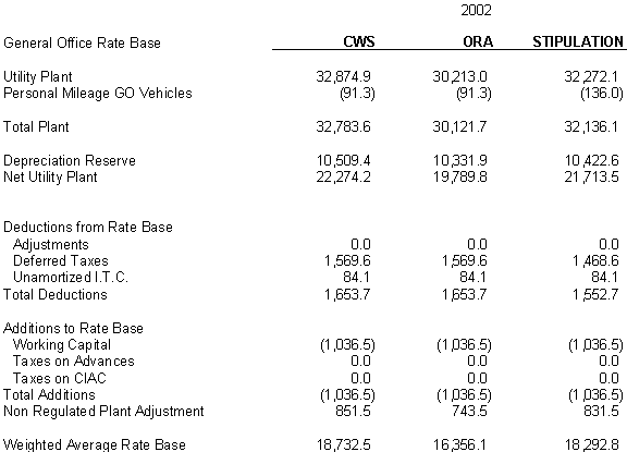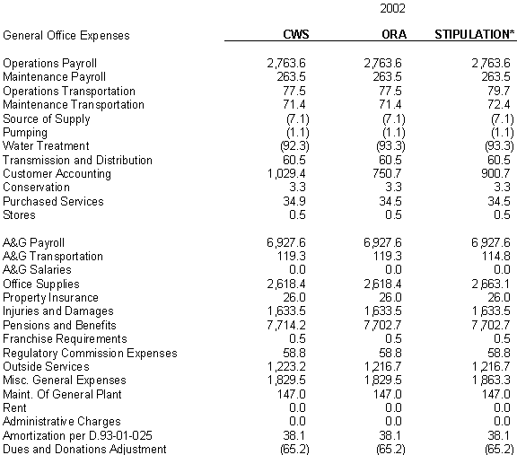 6.10 After discovering an error in its adjustment for vehicles, CWS reduced stipulated plant by $44,700 in 2000, 2001 and 2002 and stipulated expenses by $3,900 in 2000, $4,400 in 2001, and $4,500 in 2002. ORA agrees with CWS's correction.