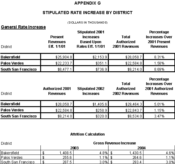 Appendix G Stipulated Rate Increase By District