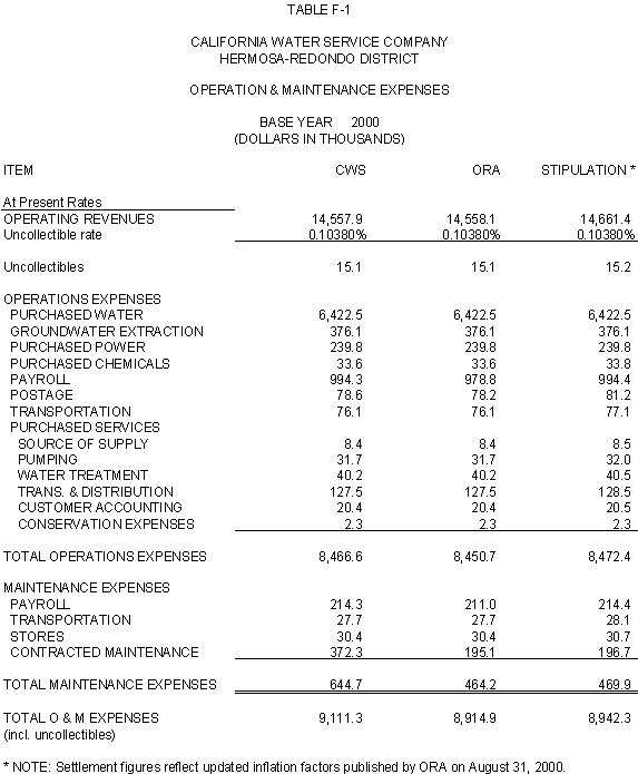 5.06 Based on a review of recorded data for 2000, the Parties agree that CWS's estimate of nonspecific expenditures for the Base Case in the Hermosa-Redondo District is reasonable and that ORA's estimate should be increased by $50,000.